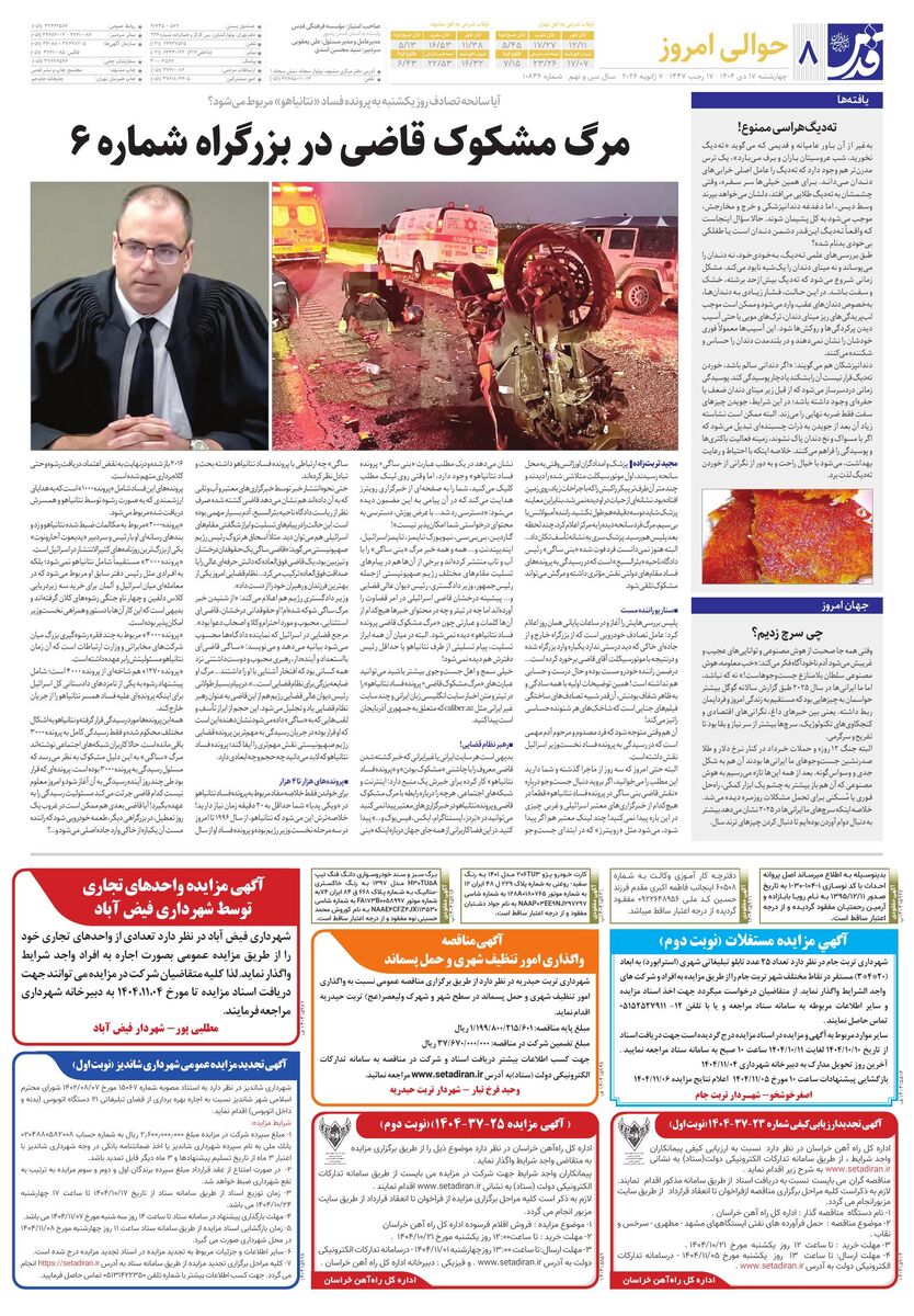 10836 - روزنامه قدس شماره ۱۰۸۳۶ - ۱۴۰۴-۱۰-۱۷
