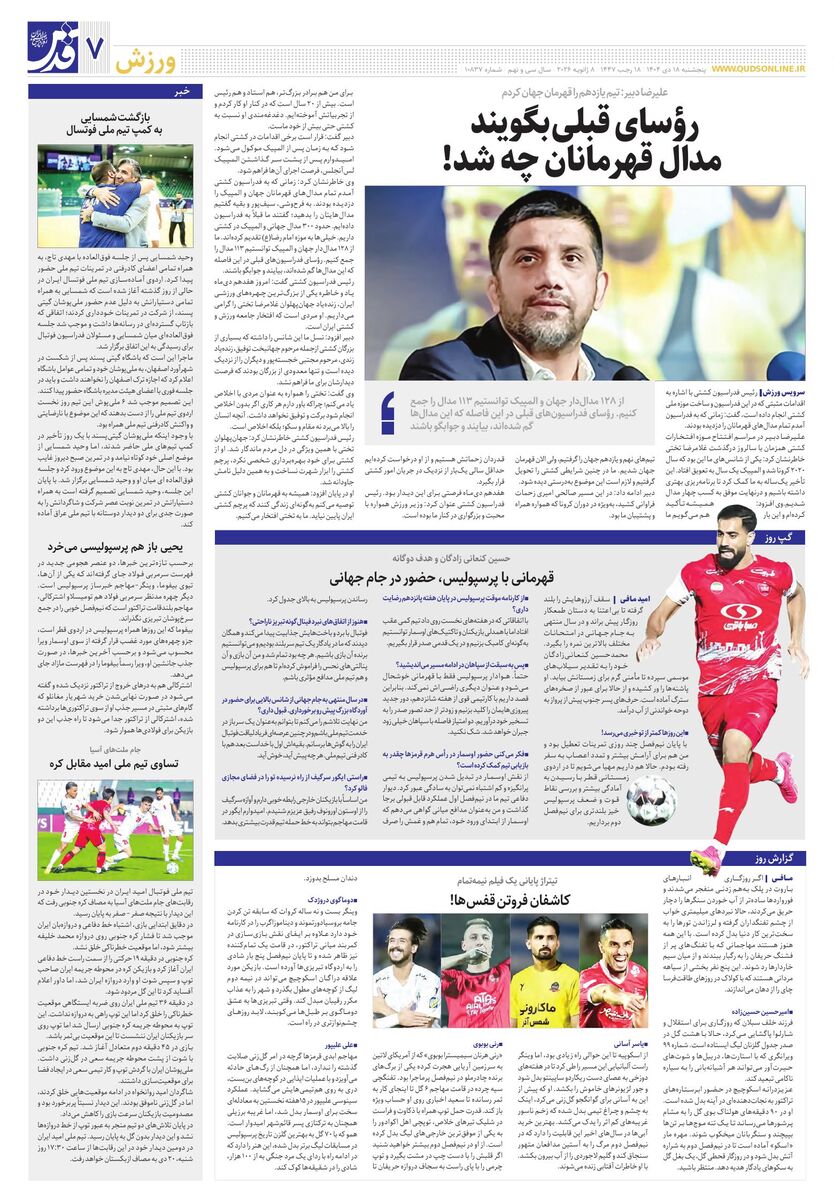 10837 - روزنامه قدس شماره ۱۰۸۳۷ - ۱۴۰۴-۱۰-۱۸