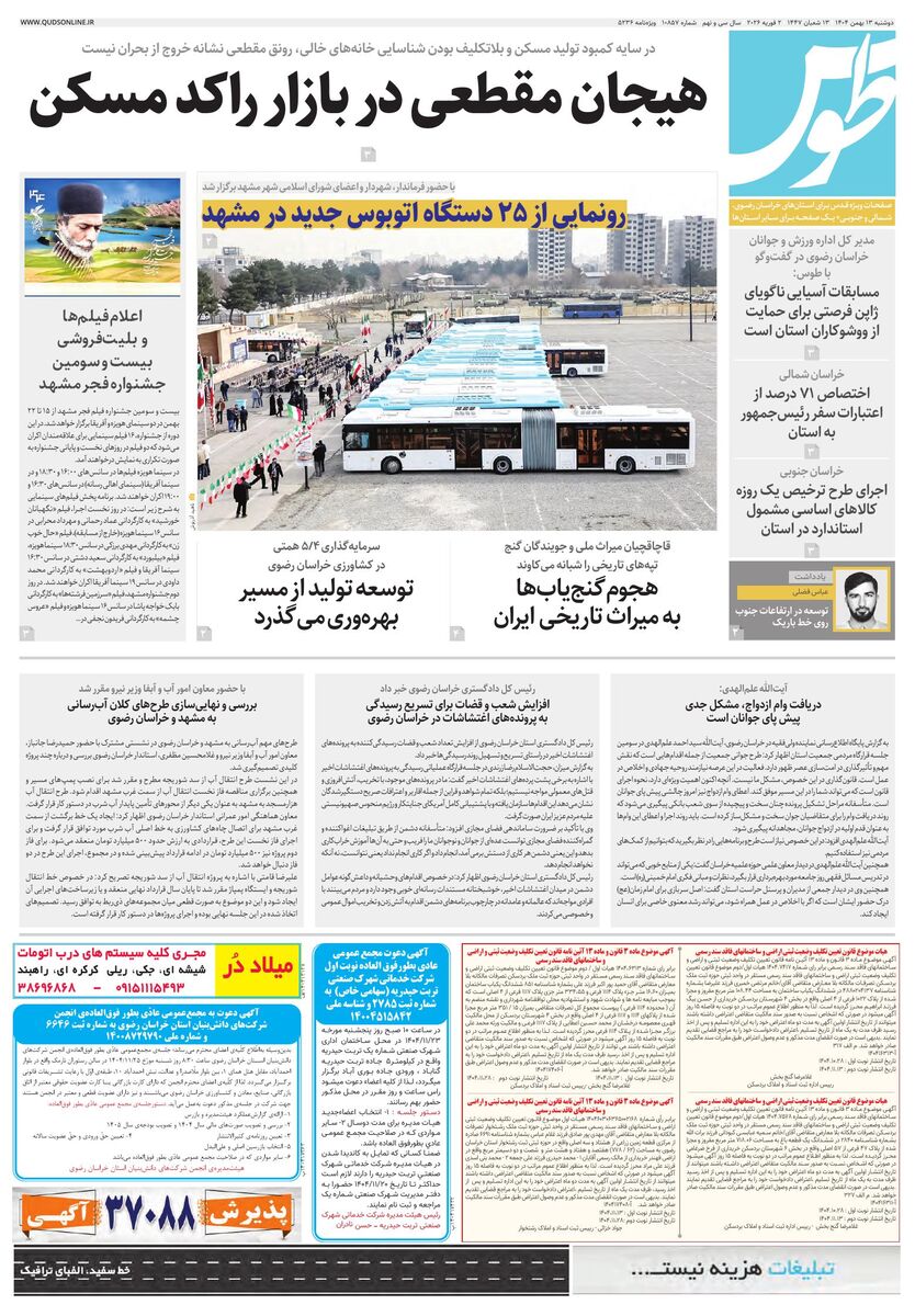 10857 - روزنامه قدس شماره ۱۰۸۵۷ - ۱۴۰۴-۱۱-۱۳