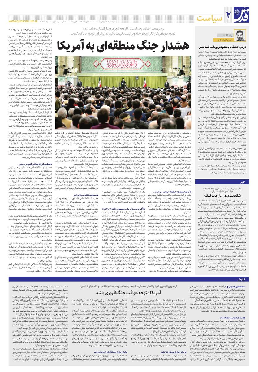 10857 - روزنامه قدس شماره ۱۰۸۵۷ - ۱۴۰۴-۱۱-۱۳