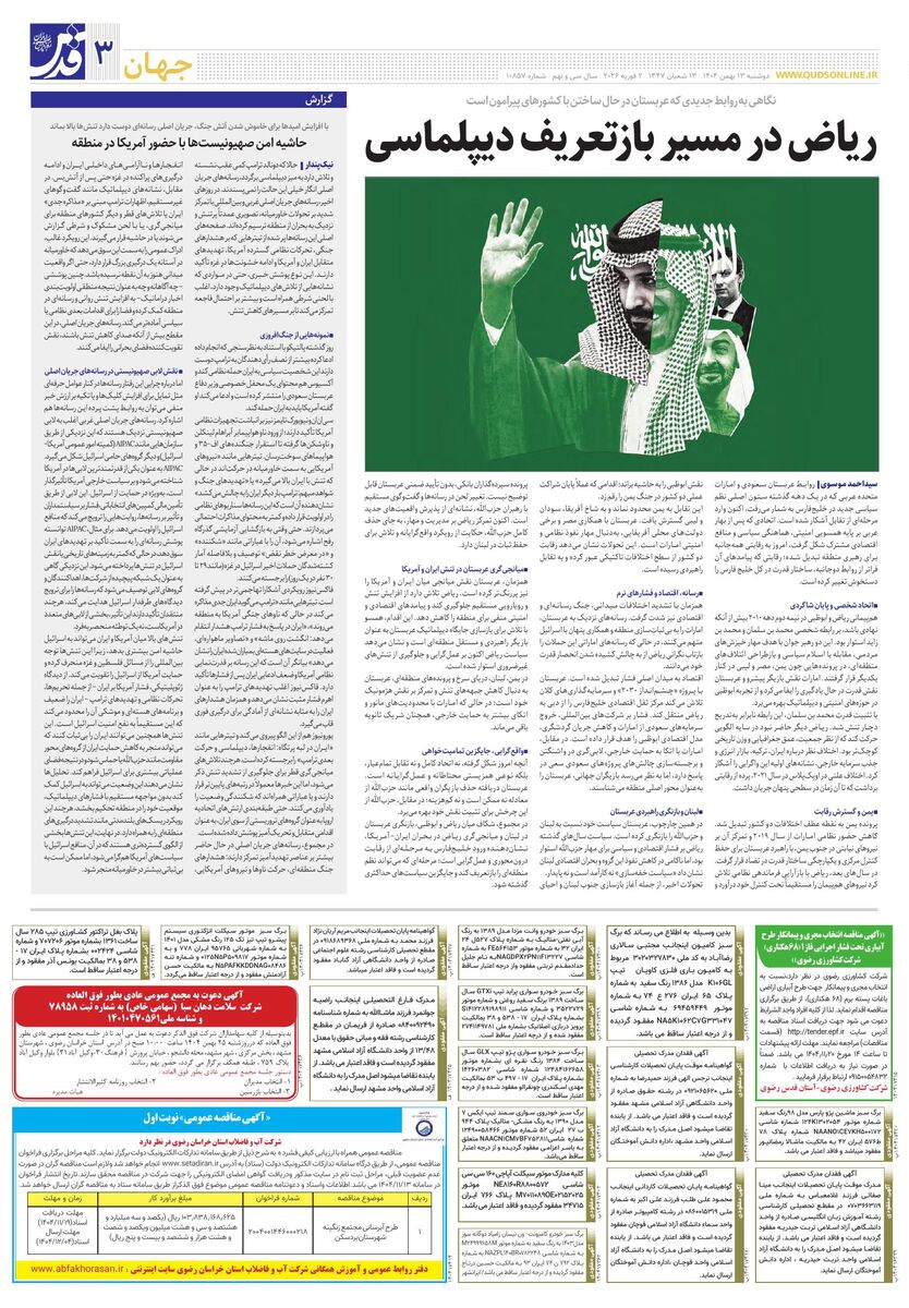 10857 - روزنامه قدس شماره ۱۰۸۵۷ - ۱۴۰۴-۱۱-۱۳