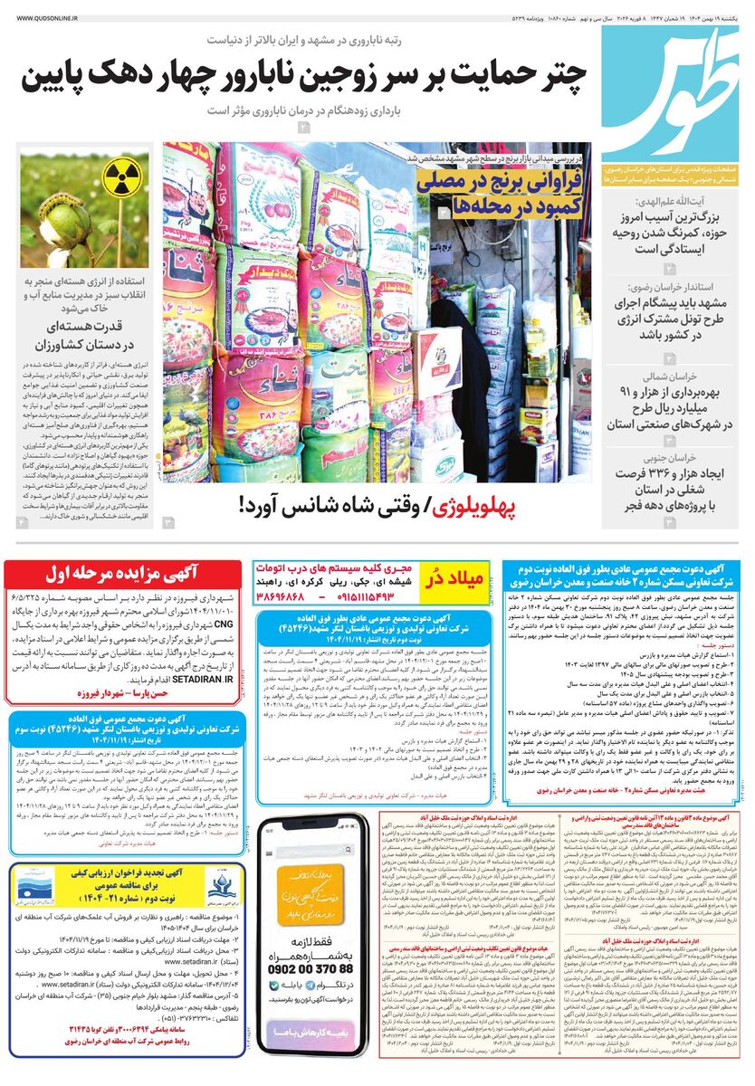 10860 - روزنامه قدس شماره ۱۰۸۶۰ - ۱۴۰۴-۱۱-۱۹