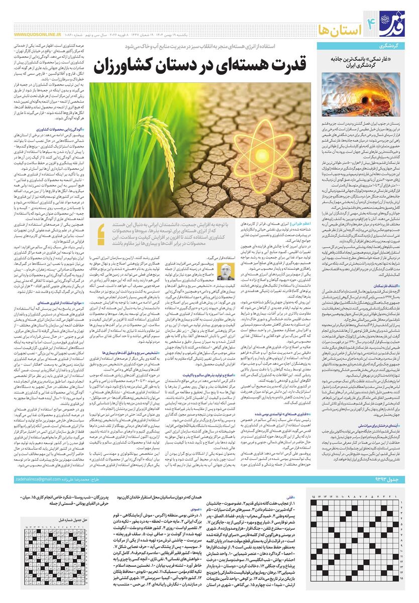 10860 - روزنامه قدس شماره ۱۰۸۶۰ - ۱۴۰۴-۱۱-۱۹