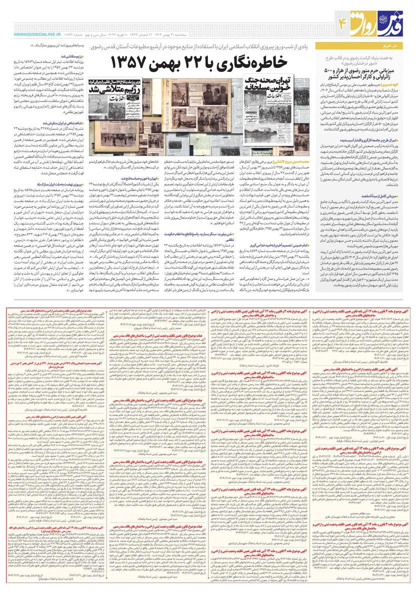 10862 - روزنامه قدس شماره ۱۰۸۶۲ - ۱۴۰۴-۱۱-۲۱
