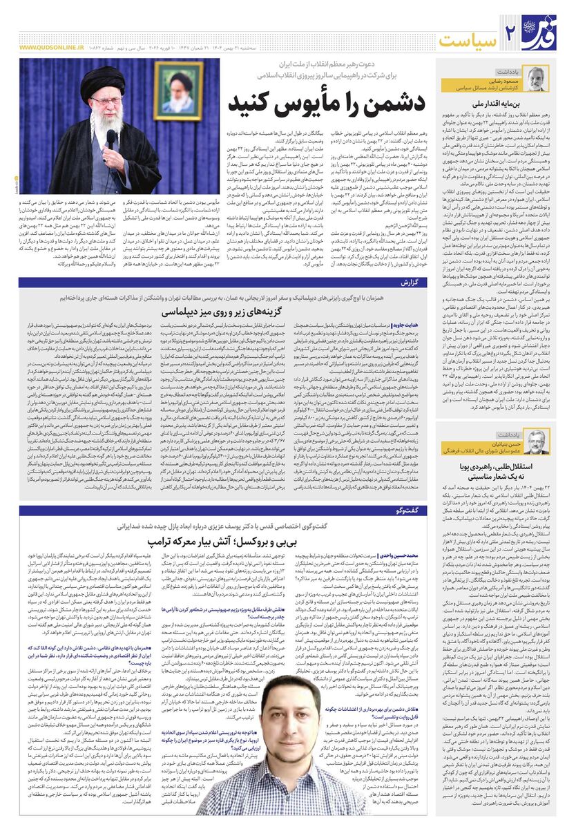 10862 - روزنامه قدس شماره ۱۰۸۶۲ - ۱۴۰۴-۱۱-۲۱