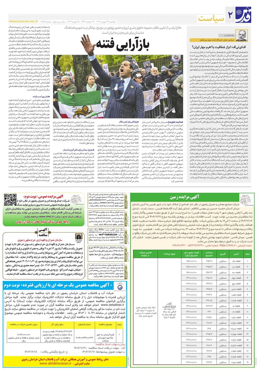 10865 - روزنامه قدس شماره ۱۰۸۶۵ - ۱۴۰۴-۱۱-۲۶