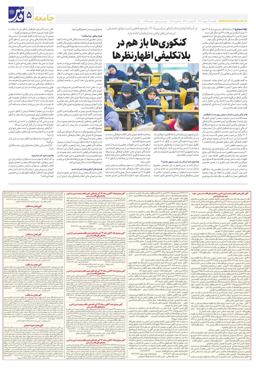 10865 - روزنامه قدس شماره ۱۰۸۶۵ - ۱۴۰۴-۱۱-۲۶