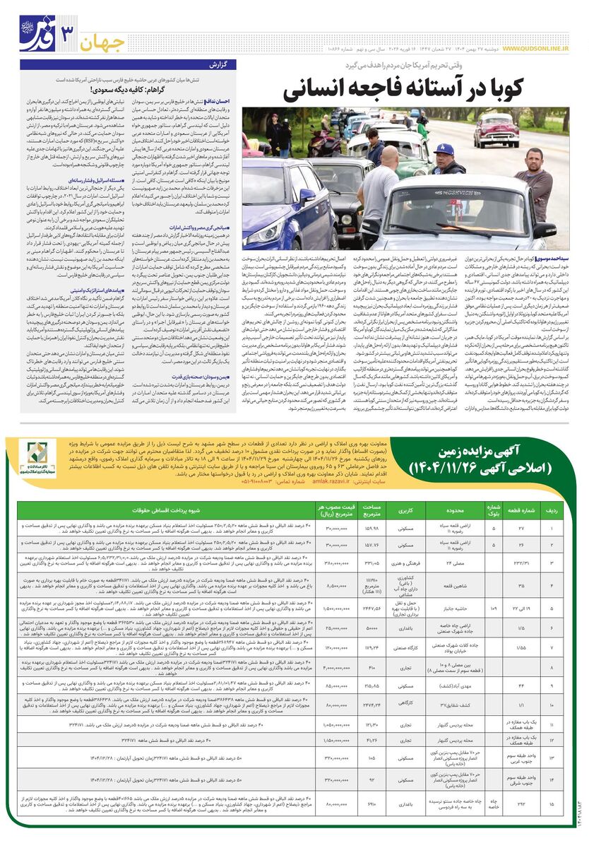 10866 - روزنامه قدس شماره ۱۰۸۶6 - ۱۴۰۴-۱۱-۲۷