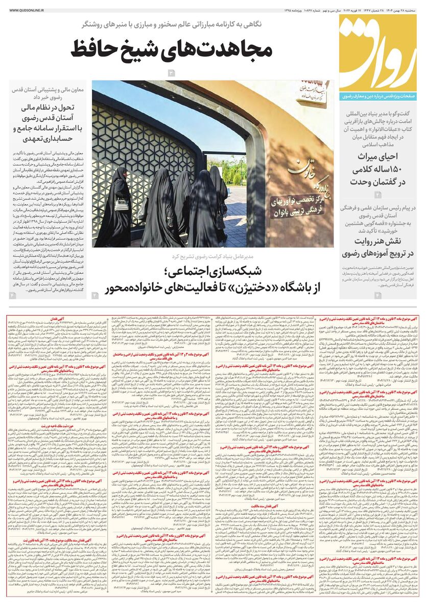 10867 - روزنامه قدس شماره ۱۰۸۶۷ - ۱۴۰۴-۱۱-۲۸